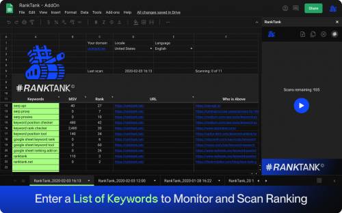 - RankTank Google Sheet Extension